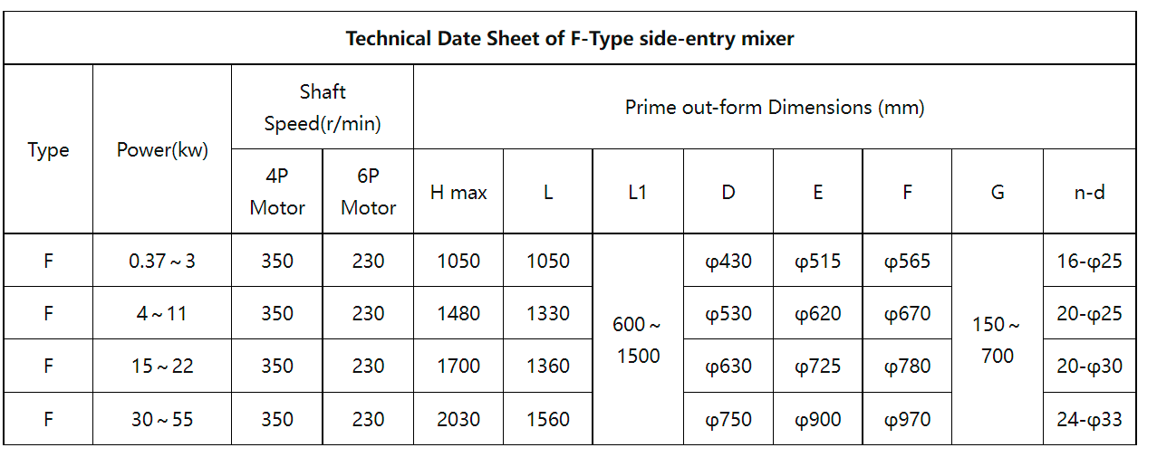 Einführung des F-Typ-Rührwerks mit seitlichem Eintritt: