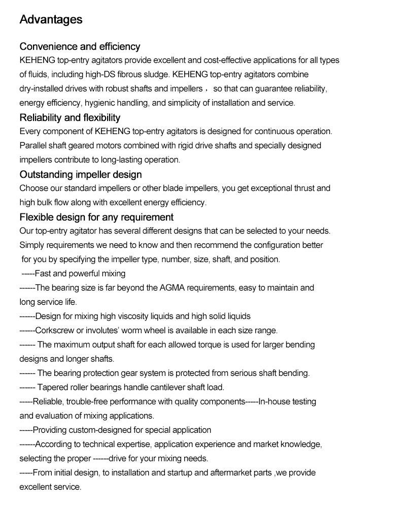 KEHENG Top-Entry-Rührwerk. Seit 1989 helfen wir Verarbeitungsbetrieben auf der ganzen Welt dabei, die Mischer und andere Ausrüstung zu finden, die sie für ihre spezifischen Anwendungen benötigen.Basierend auf Ihren spezifischen Montage-, Strömungsmuster- und Mischanforderungen können wir Ihnen bei der Auswahl der Top-Entry-Mischer helfen, die Ihren Anforderungen am besten entsprechen, und Ihnen das Laufraddesign und die Position vorschlagen, die eine maßgeschneiderte Lösung für nahezu jedes Rühr- und Mischverfahren bieten Verfahren.Unsere Vertriebsingenieure stehen Ihnen für eine Beratung zur Verfügung, um herauszufinden, welches Produkt oder welche maßgeschneiderte Ausrüstung am besten zu Ihrem Verarbeitungsbetrieb passt.